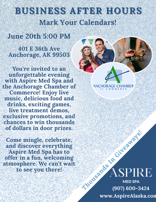 Join us for Business After Hours! Enjoy live music, food, refreshments, outdoor games, and networking among a broad array of industries in a casual but professional atmosphere. Stop in the photo booth to capture your moment and don't miss out with live demos of Emsculpt, Emsella, Styku & Peri-Ocular RF Microneedling!