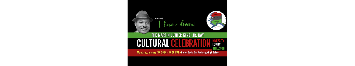 The Martin Luther King, Jr. Day Cultural Celebration will take place on Monday, January 19, 2026 at 5:00 PM at Bettye Davis East Anchorage High School. This special event highlights the importance of Diversity, Equity, and Inclusion, while creating space for unity, learning, and joy.
